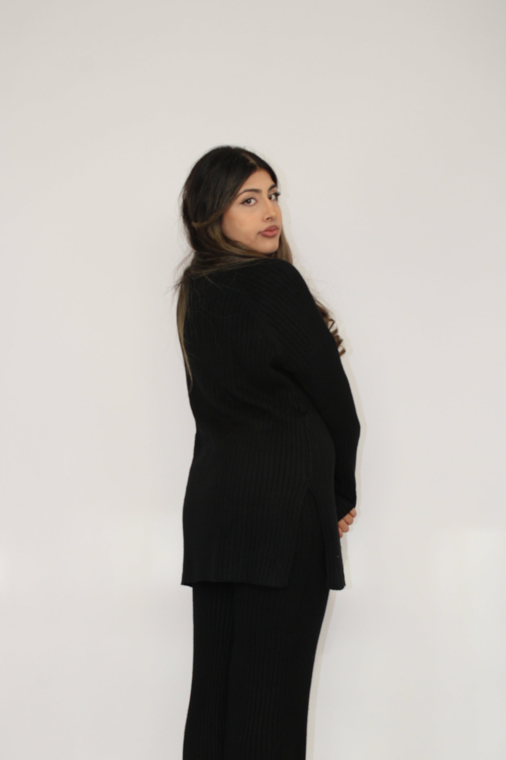 BLACK RIBBED KNITTED CO ORD SET