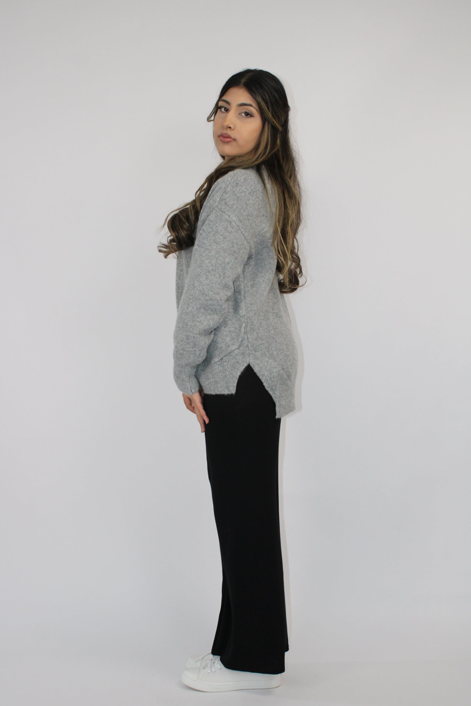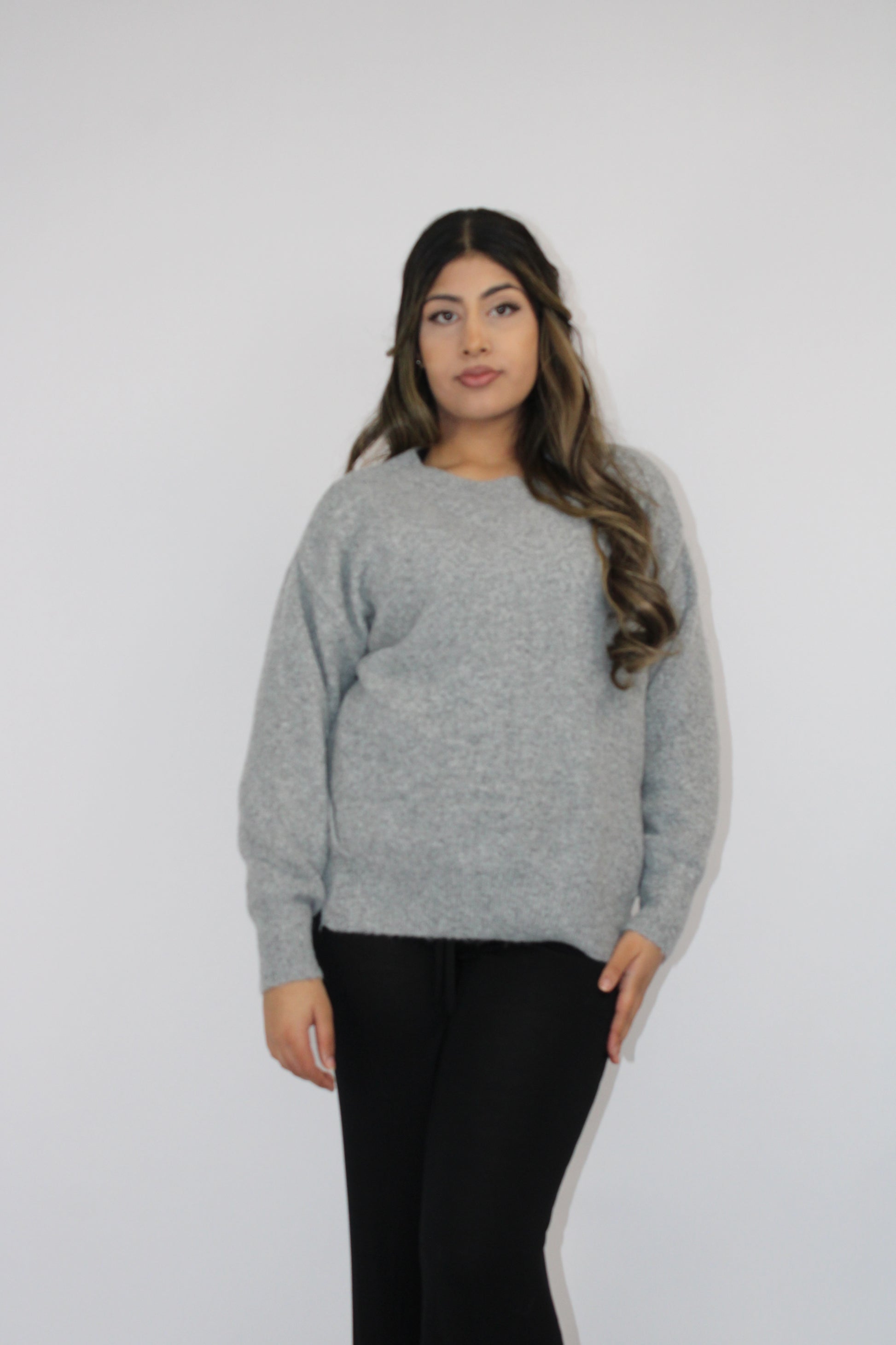 GREY SOFT KNIT LONG SLEEVE JUMPER